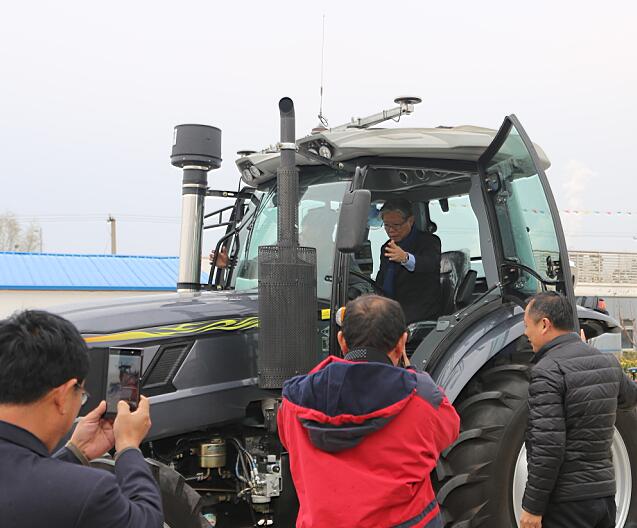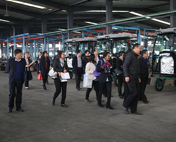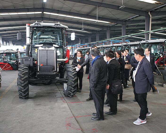 在參觀現場,褚總和楊總向巴帕主席及各位來賓詳細介紹了公司近年來的發展情況、產品的生產工藝、良好的市場態勢等事項。在聽取了有關介紹后, 巴帕主席及考察團成員對公司在生產、經營等方面取得的成績贊不絕口,同時對車間內整潔的環境及嚴格工藝要求給予高度評價。巴帕主席對適宜當地生產的農機進行了詳細詢問并親自上車嘗試。