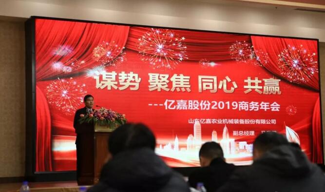 1月6日,以“謀勢、聚焦、同心、共贏”為主題的新三板掛牌企業、山東億嘉農業機械裝備股份公司(下稱“億嘉股份”)在杭州隆重召開2019年商務年會,來自全國的300多名經銷商與供應商代表齊聚西子湖畔。中國農機化協會副會長馬世青、農業部農業機械試驗鑒定總站信息處副處長朱禮好等、山東省農機工業協會副會長兼秘書長吳肇明等領導與嘉賓也前來共襄億嘉年度盛會。