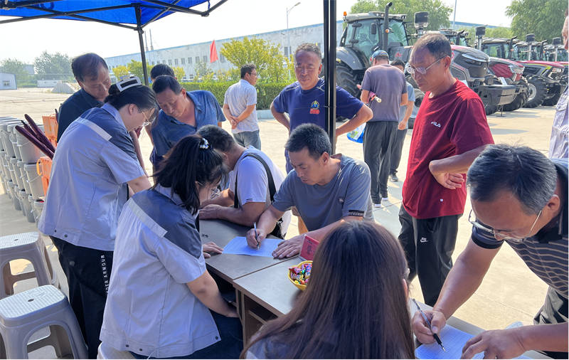 8月,立秋節(jié)氣,農(nóng)作物成熟的氣息越來越濃,一個(gè)即將豐收的季節(jié)撲面而來,也是傳統(tǒng)農(nóng)機(jī)銷售、煥新的好時(shí)機(jī),不少用戶都想為自己升級(jí)選購(gòu)一臺(tái)大馬力新拖拉機(jī)。為滿足終端消費(fèi)用戶的需求,8月16日,公司組織開展了一場(chǎng)切實(shí)以“國(guó)四升級(jí) 讓利終端 福利爆滿”為目標(biāo)的廠商聯(lián)動(dòng)鉅惠盛宴——億嘉迪敖全國(guó)聯(lián)動(dòng)工廠“團(tuán)購(gòu)直銷活動(dòng)”!活動(dòng)剛開始,受邀的平度新老用戶就在銷售經(jīng)理的陪伴下來到了我們活動(dòng)簽到現(xiàn)場(chǎng),領(lǐng)取我們